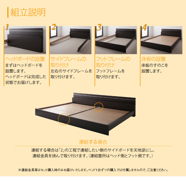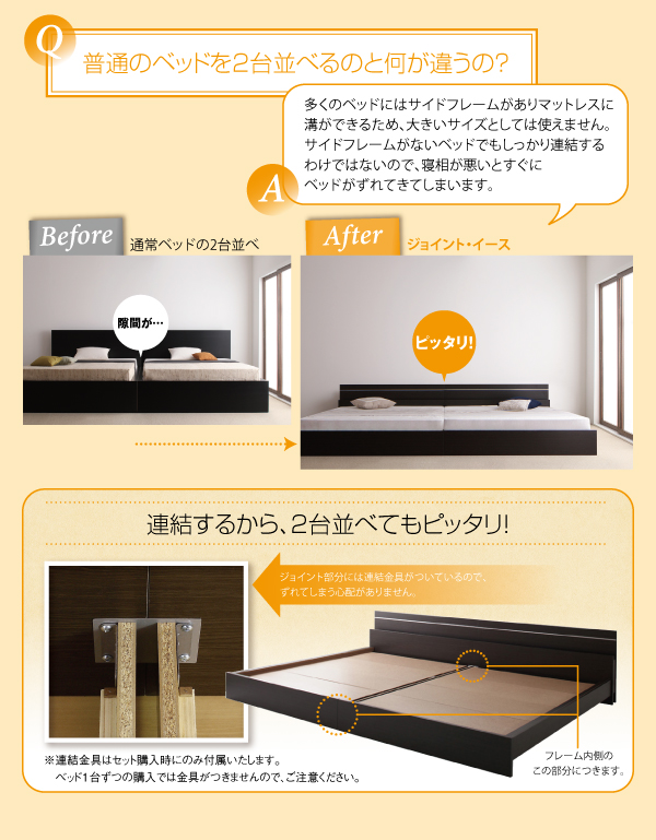 親子で寝られる・将来分割できる連結ベッド【JointEase】ジョイント・イース【ボンネルコイルマットレス付き】ワイドK200 ダークブラウン