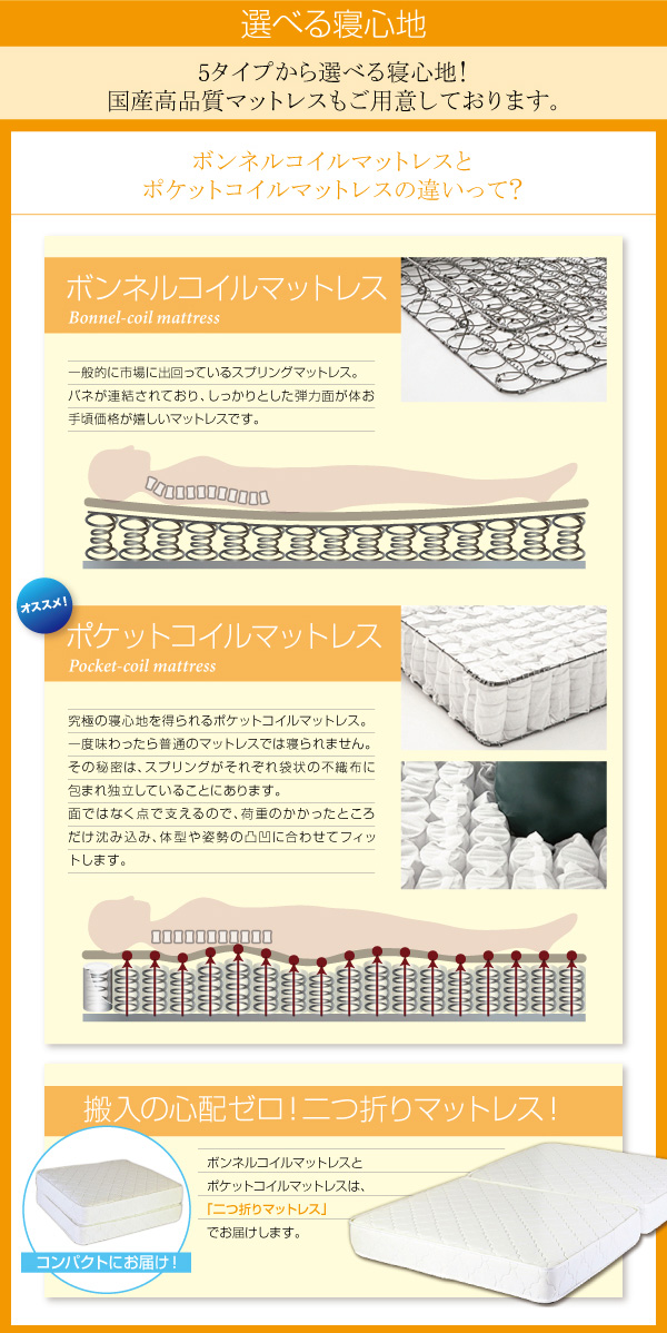 ※こちらのベッドはスプリングマットレスを乗せてご使用いただく事を前提に設計されております。