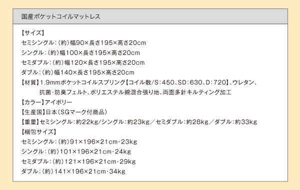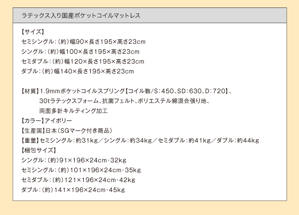 ラテックス入り国産ポケットコイルマットレス:42cm