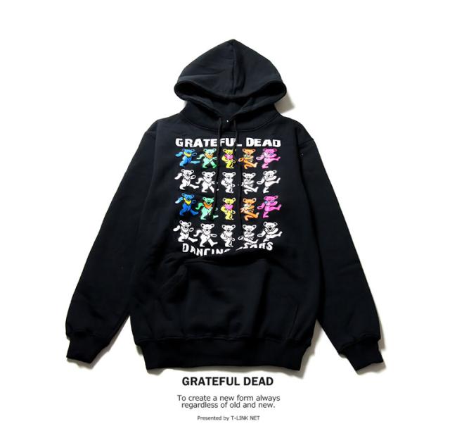 送料無料 ロックパーカー Grateful Dead パーカー グレイトフルデッド ダンシングベア プルオーバー 裏起毛 パーカ メンズ レディース バンド スウェット ダンス 衣装 ロゴ フード トレーナー ミュージック ファッション 秋冬 冬服 コットン 100% ブラック 黒 M-2XL