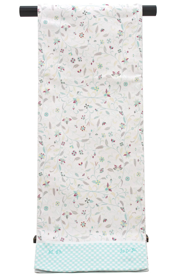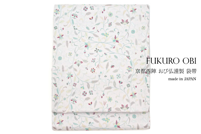 袋帯 未仕立て 灰紫 パープル 更紗 花唐草 絹 六通柄 京都西陣織 607 おび弘 カジュアル 日本製