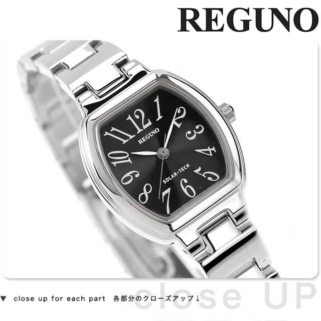 正規品 7年保証キャンペーン シチズン レグノ ソーラーテック レディス ブレスレット KP1-110-51 CITIZEN REGUNO 腕時計 アナログ ブラック レグノより、ビジネスからカジュアルまでシーンを選ばない、デザイン性と機能性を兼ね備えたスタンダードウォッチです。ソーラーテック搭載のため、定期的な電池交換が不要。オールアラビア数字採用のインデックスは視認性が高く、指先やツメを傷めにくい両プッシュ中留が実用性を確保しています。小ぶりで華奢なデザインが、腕もとで女性らしい可愛らしさを演出します。 発売日:15年9月発売