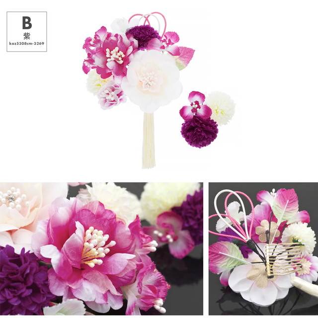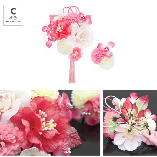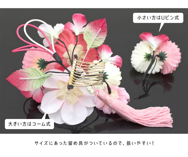 成人式 髪飾り 成人式の髪飾り 2点セット 桃色 白 ピンク 菊 花 水引 房紐 ラメ コサージュ 卒業式 振袖 袴 前撮り 髪留め ヘアアクセサリー 日本製 和装