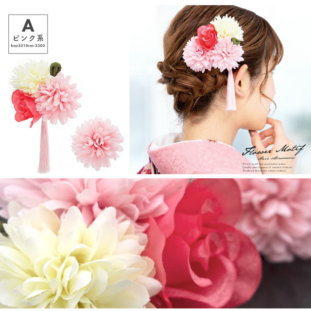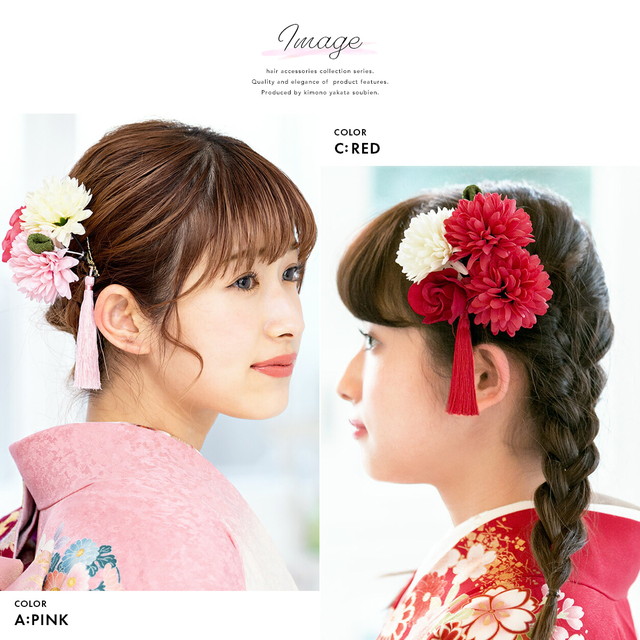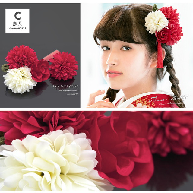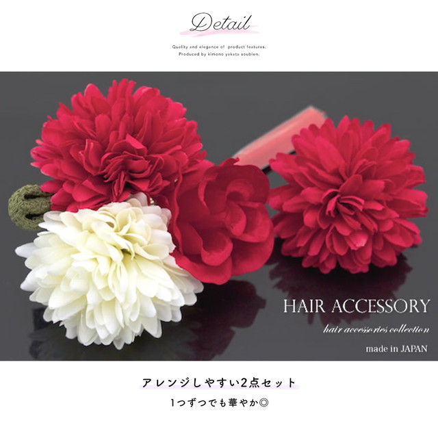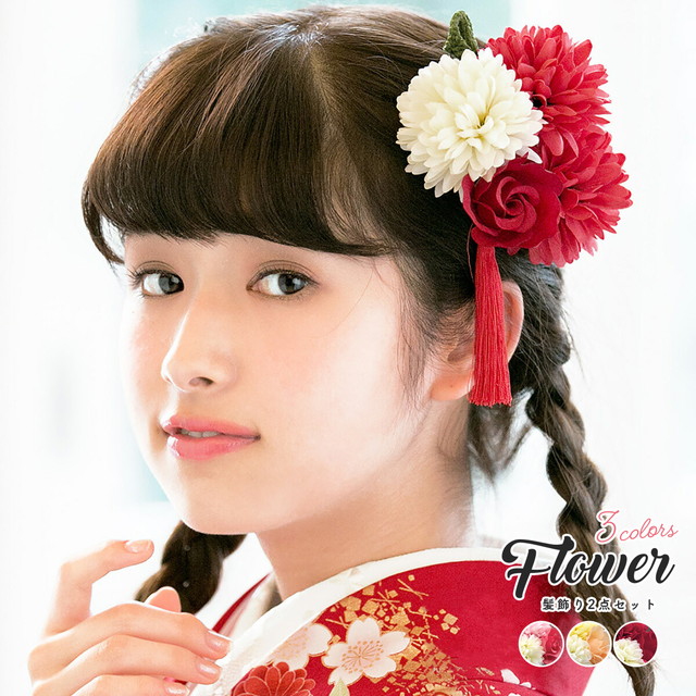 成人式 髪飾り 成人式の髪飾り 2点セット 赤 黄 菊 薔薇 花 房紐 コサージュ 卒業式 振袖 袴 前撮り 髪留め ヘアアクセサリー 日本製 和装
