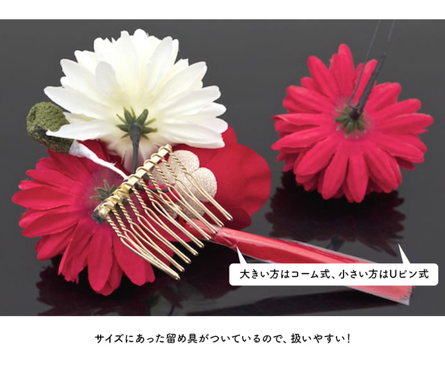 お花のコサージュによる日本製の髪飾りセットです。