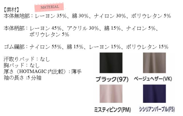 本体無地部:レーヨン35%、綿30%、ナイロン30%、ポリウレタン5%