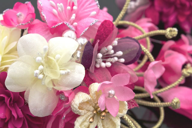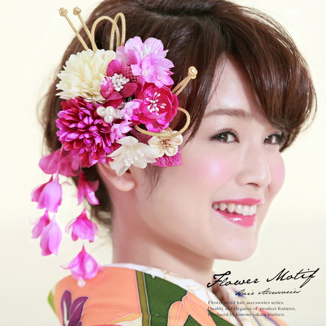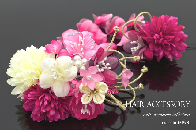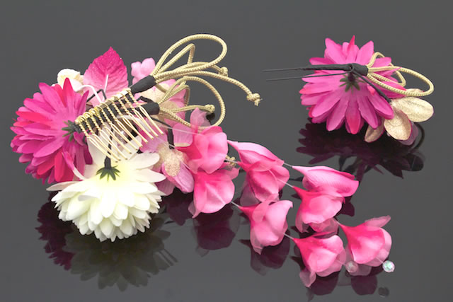成人式 髪飾り 成人式の髪飾り 2点セット ピンクマゼンタ 桜 菊 花 つまみ細工 水引 ラメ コサージュ 卒業式 振袖 袴 前撮り 髪留め ヘアアクセサリー 日本製 和装