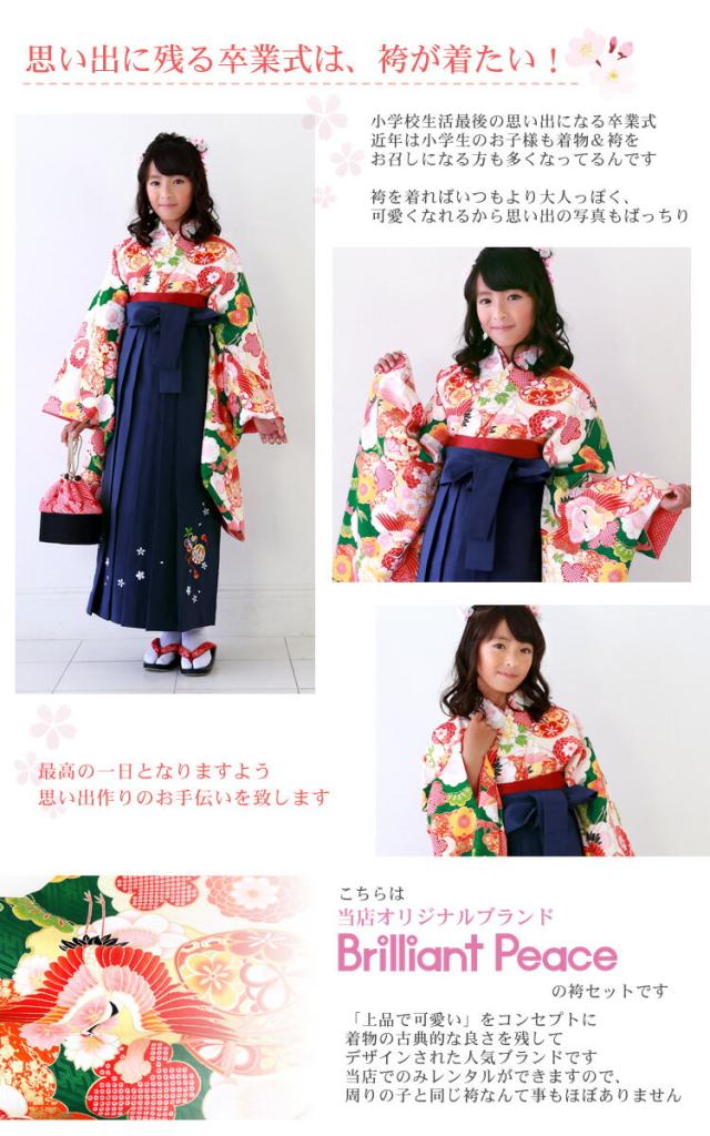 【7泊8日レンタル】卒業式 袴 レンタル 小学生 「ブリリアントピース ジュニア卒業式袴レンタルセット」オリジナル BP