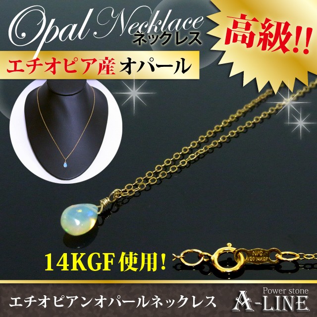 ネックレス エチオピアンオパール 14KGF平あずきチェーン45cm ポーチ付き 10月の誕生石 PW-2902
