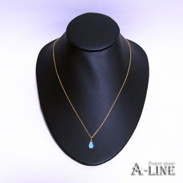 エチオピア産オパール(ハイドロフェーンオパール)・14KGFワイヤー・14KGF平あずきチェーン線径0.25mm・45cm