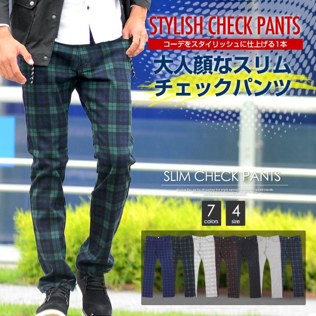 【1点までポスト便送料無料】/【w545】 / チェックパンツ メンズ チノ チノパンツ チェック パンツ スリム ストレート カジュアル ビジネス ゴルフ