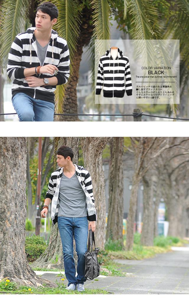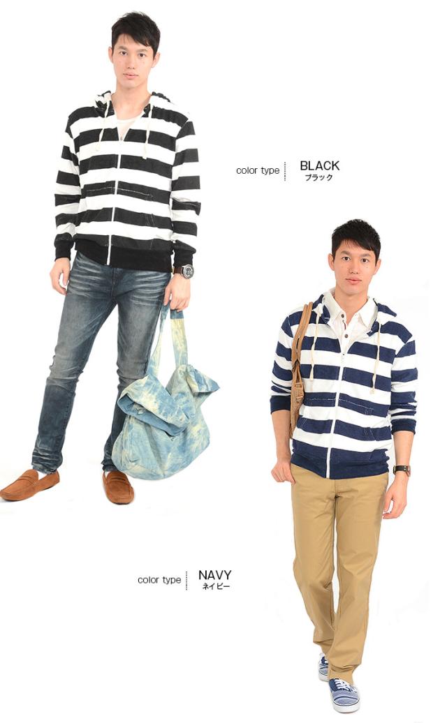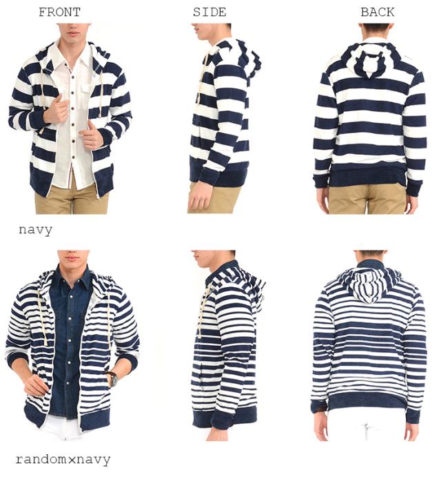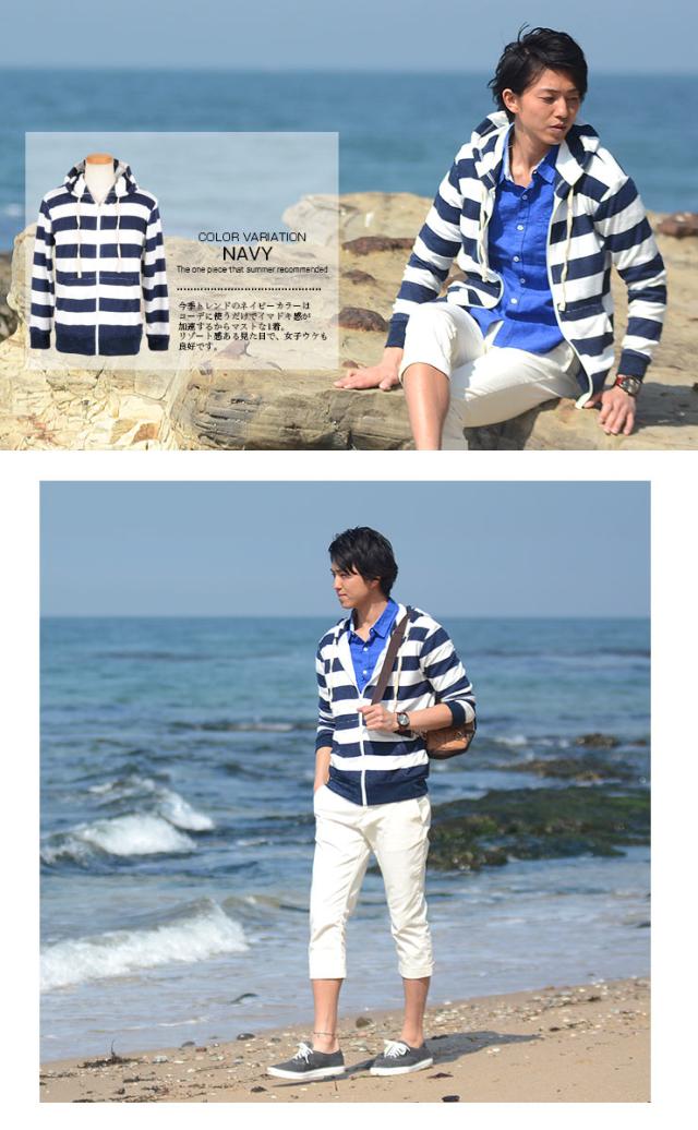 【w636】 / パーカー ニット パーカ 長袖 パイル ボーダー フード ジップ ジップパーカー 春 夏 パネルボーダー マリン リゾート