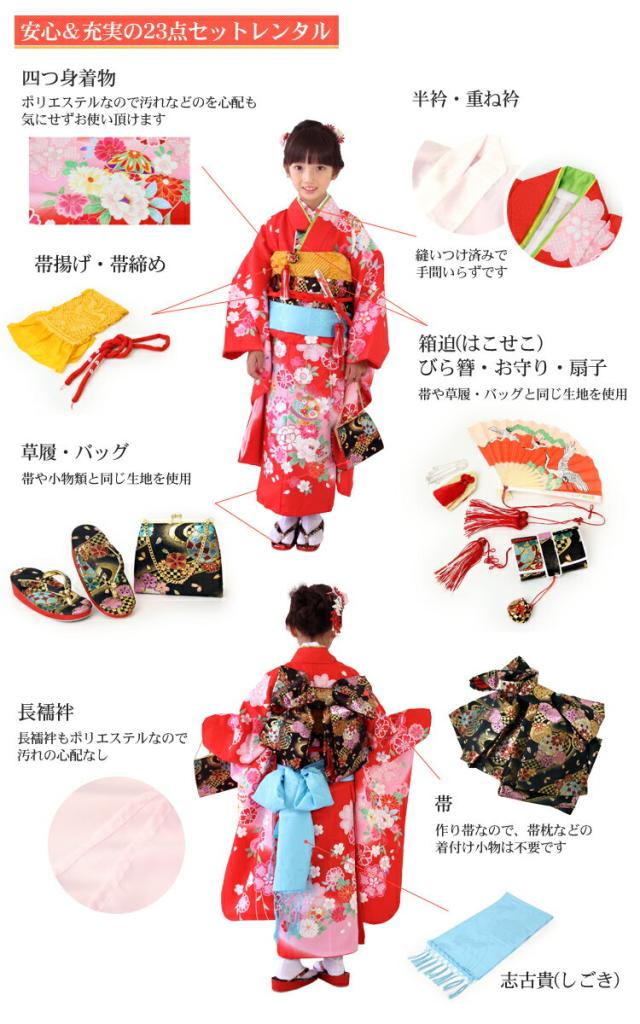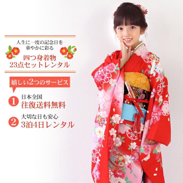 七五三 7歳 着物 23点セット レンタル 四つ身着物23点セットレンタル晴れ着