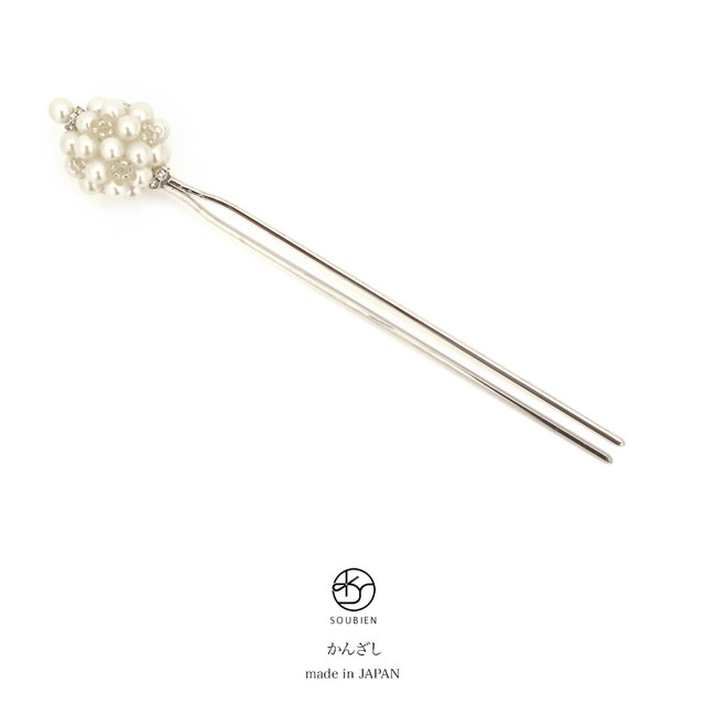 玉簪(かんざし) 白 ホワイト 銀 パールビーズ 玉かんざし 髪飾り ヘアアクセサリー フォーマル 和洋兼用 小紋 日本製 和装
