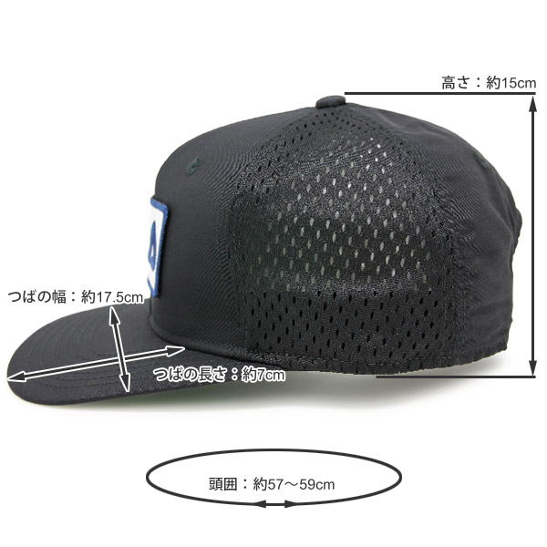 サイズ表記57〜59cm(頭囲:約57〜59cm[スナップで調節可能・ホール数7]、高さ:約15cm、つば:長さ約7cm・幅約17.5cm)