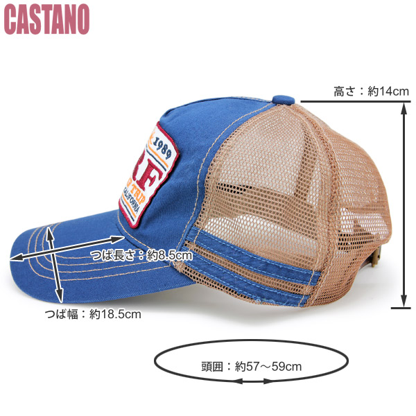 | 素材 | 本体:綿100% メッシュ部分:ナイロン100% アジャスター部分:牛革 |
