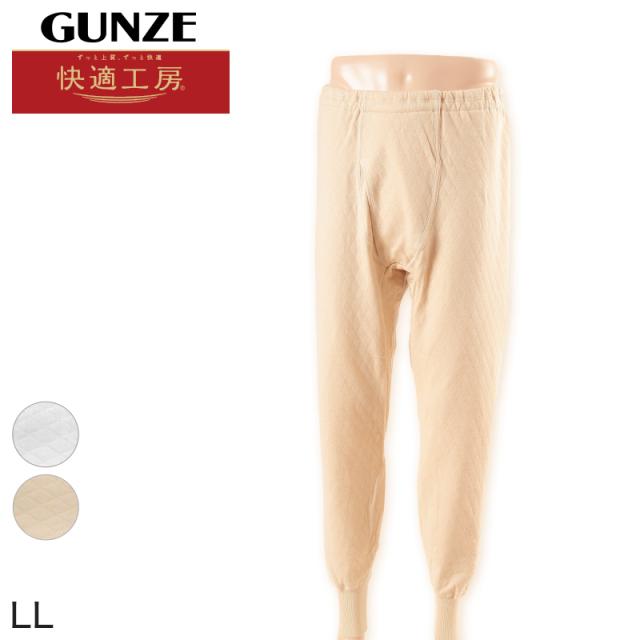 グンゼ 快適工房 紳士 ウール混あったかロングパンツ LL (キルト 防寒インナー 前開き メンズ GUNZE 綿 ズボン下 コットン 男性 下着 肌着 日本製 白 ベージュ 冬 大きいサイズ) (在庫限り)