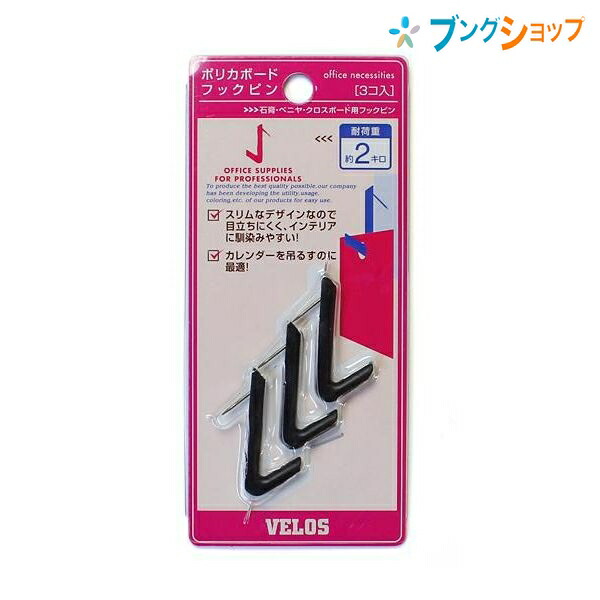 ベロス 画鋲・PIN ポリカボードフックピン 黒 PBHP-354BK VELOS べろす 石膏 ベニヤ クロスボード カレンダーを吊るすのに最適 スリムなデザイン 目立ちにくい インテリアになじむ 耐久性 錆びにくい丈夫なステンレス針