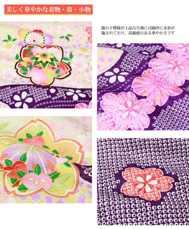 | ※肩上げ加工済み ※身上げはされておりません ※モデル着用の髪飾りはセット内容には含まれません。 | |||