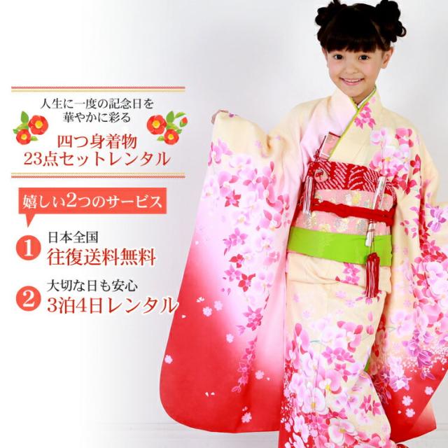 七五三 7歳 着物 23点セット レンタル 四つ身着物23点セットレンタル 晴れ着