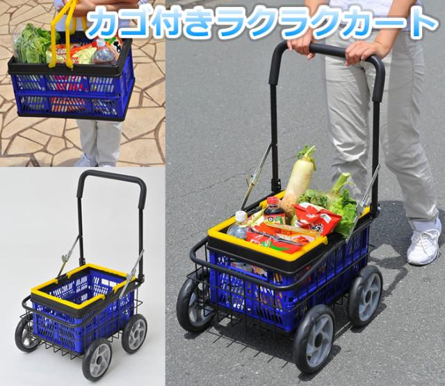 カゴ付きラクラクカート お買い物カート ショッピングカート 台車 運搬用カート 手押しカート 野菜の収穫に ゴミ捨て