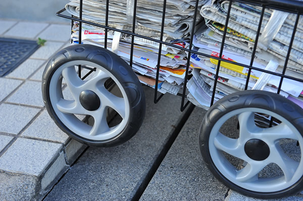 | 農作業・ゴミ出し・買い物に便利なカゴ付カート コンパクトにたためるカゴが付いたキャリーカート。 耐荷重量は約30kgと重たい荷物やたくさんの荷物もラクラク運べます。 カゴは取り外して使えます。 大きな車輪でデコボコ道もへっちゃらです! ハンドルは折りたためます。 野菜の収穫やゴミ出し、資源回収の時などに大助かり! |