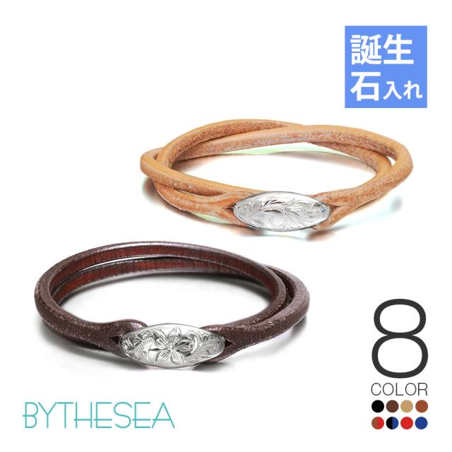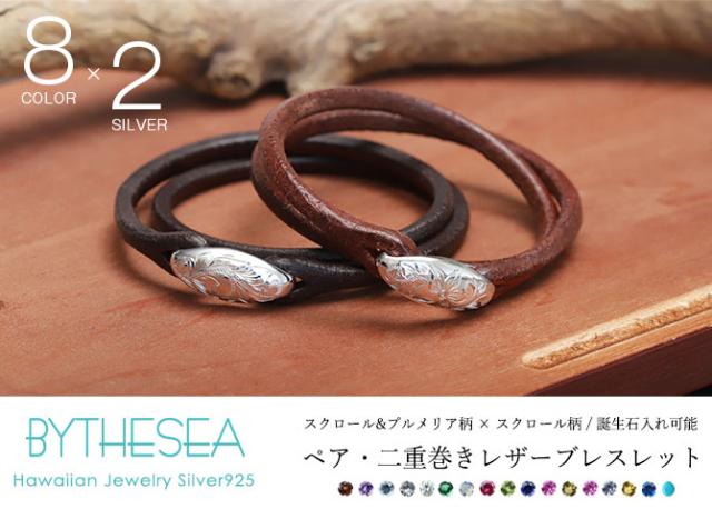 ハワイアンジュエリー ブレスレット ペアブレスレット 誕生石入れ可 二重巻き レザー 革 色選べる 2本セット シルバー925 パーツ 国産サドルレザー使用 select BY THE SEA バイザシー カップル 夫婦 プレゼント ホワイトデー 卒業式 入学式 【品番:BL103-BL104P】