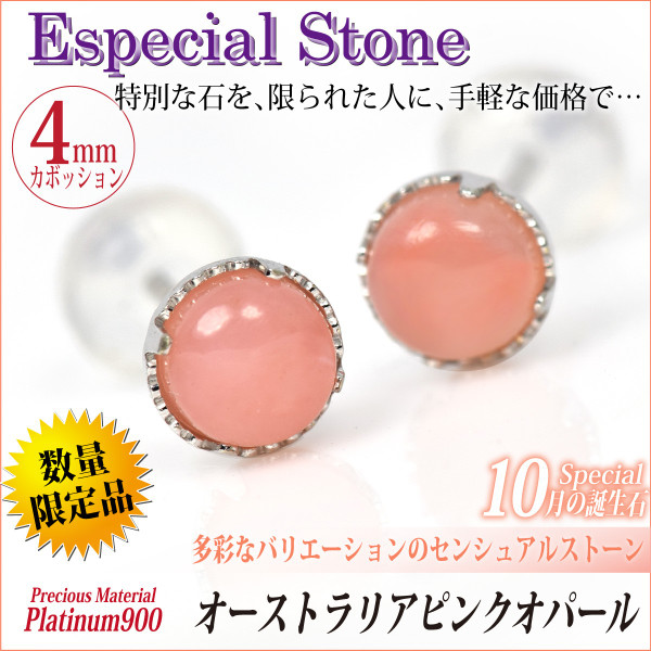 送料無料 Pt900プラチナ ピンクオパール 4mmカボション ミル打ち風ピアス 両耳ペア ダブルロックキャッチ付