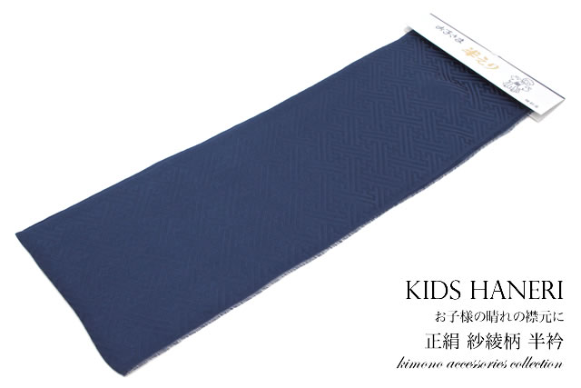 半襟 七五三 半衿 男の子 紺藍 ネイビー 紗綾形 正絹 入学式 男児 子供 キッズ 和装小物 メール便対応