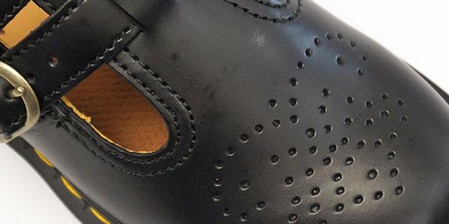 頑丈で滑らかな仕上げの天然皮革を使用したドクターマーチンのダブルストラップシューズ。アッパーに落とし込んだメダリオンがクラシカルな印象。古美加工されたアンティーク調の金具、丸みを帯びたデザインとイエローのステッチが女性らしいかわいらしさを演出しています。