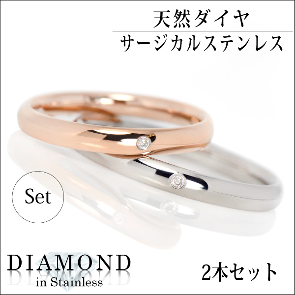ペアリング 送料無料 刻印無料 天然ダイヤモンド ステンレス 甲丸2.5mm 幅 甲丸 リング 指輪 サージカルステンレス
