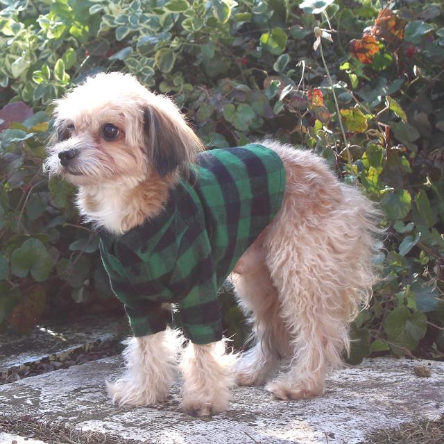 【「AGLAE」のドッグシャツ】緑/グリーン/チェック柄/ドッグウエア/犬服/イヌ/ワンちゃんグッズ/チワワ・プードルサイズ/小型犬サイズ