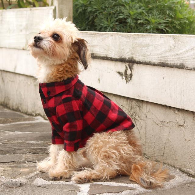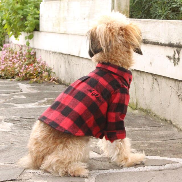 【「AGLAE」のドッグシャツ】赤/レッド/チェック柄/ドッグウエア/犬服/イヌ/ワンちゃんグッズ/チワワ・プードルサイズ/小型犬サイズ