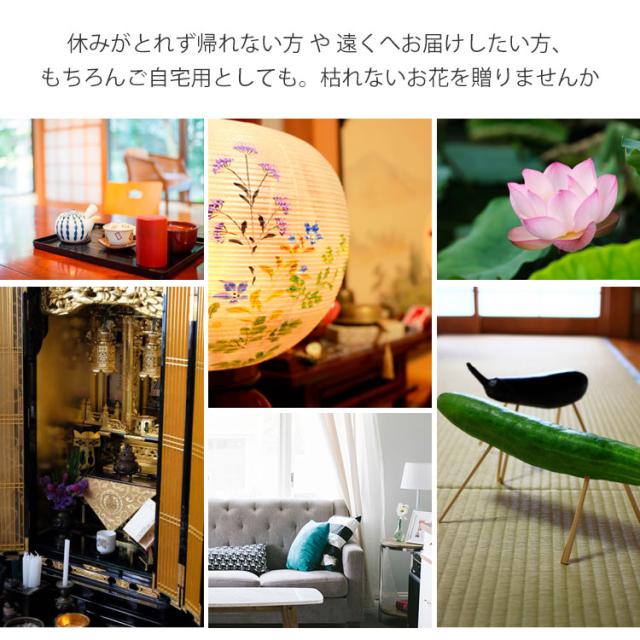 - こちらのお店でブリザードフラワーは何回か利用してますがお供え用のは何時も素敵なのに一回り大きかったらと思っていました。今回は予算と大きさバッチリでした。仏壇用には大きいかもしれませんがお部屋に置いて頂...