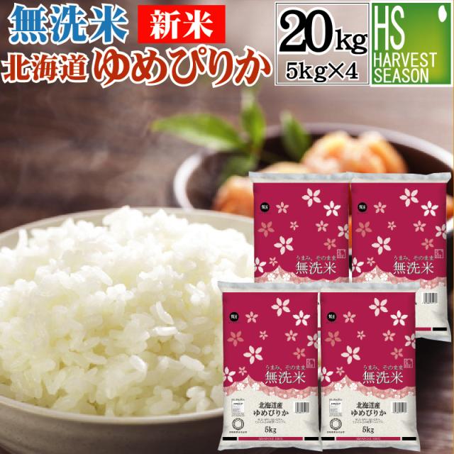 新米 令和7年産 無洗米 北海道産 ゆめぴりか20kg(5kgx4袋) 送料無料 [翌日配送]/北海道沖縄へは別途送料760円 特A獲得米