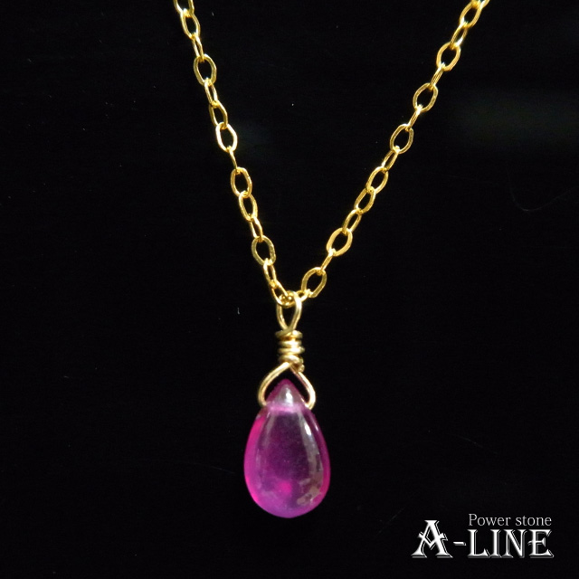 ルビー(含浸)・14KGFワイヤー・14KGF平あずきチェーン線径0.25mm・45cm