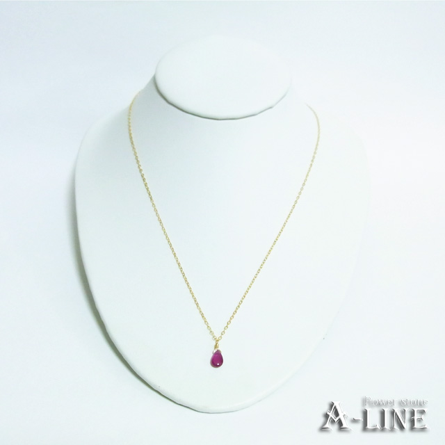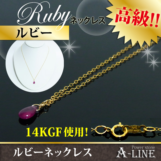 ネックレス ルビー(含浸) 14KGF平あずきチェーン45cm ポーチ付き 7月の誕生石 PW-2909