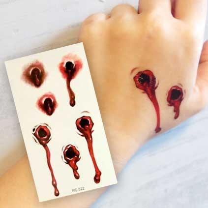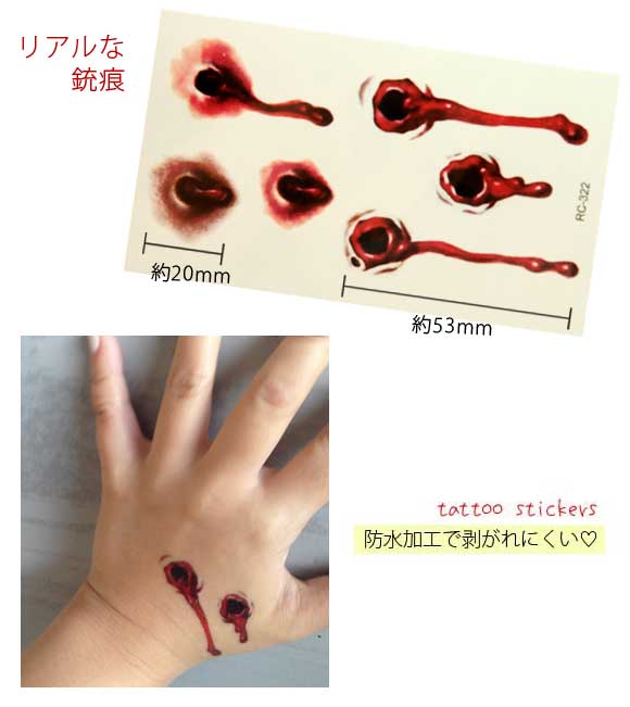 本日P2倍 タトゥーシール 銃痕B 傷 キズ 血 ゾンビ フェイクタトゥー タトゥーステッカー ハロウィン