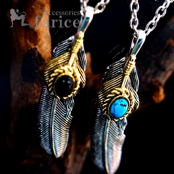★(長さ約45cm×幅約2.5mm)あずきチェーン付き♪ ★人気の王道・イーグルフェザーモチーフ! ★さらにハートフェザー(鷲の胸羽)の組み合わせで重厚感タップリ! ★トップクラスの人気を誇るパワーストーン・ターコイズの華やかな色彩! ★男女問わず高い人気を誇るパワーストーン・ブラックオニキスのお洒落&クールな輝き!