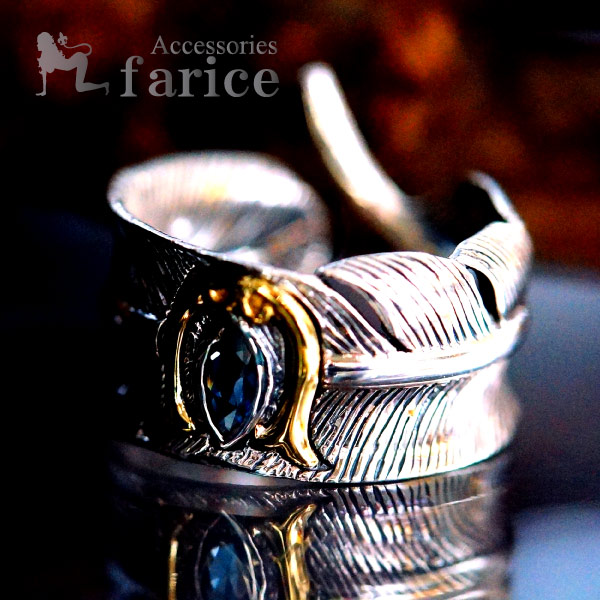 ロンドンブルートパーズ&イエローゴールド・ホースシューリバース装飾 インディアンジュエリー シルバー925 フェザーリング
