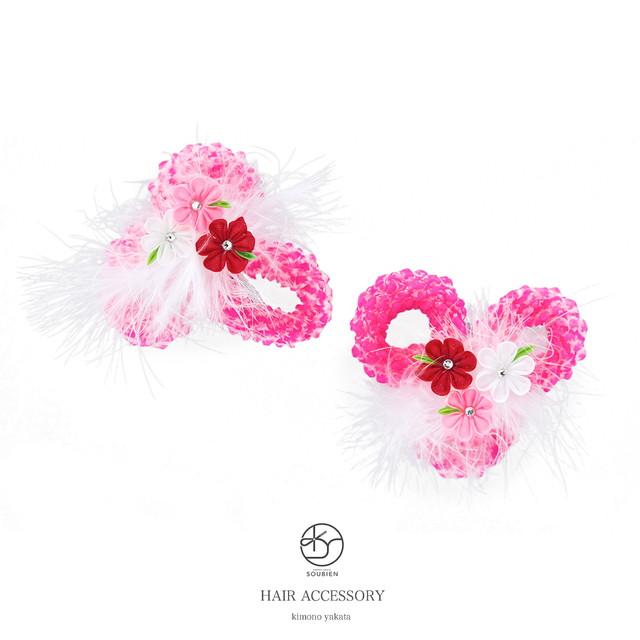 七五三 髪飾り 三歳 2点セット ピンク つまみ ちんころ 花 羽 女の子 3才 7才 スリーピン パッチン留め 髪留め ヘアアクセサリー 和装