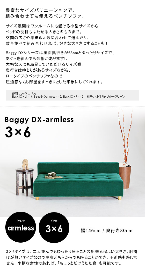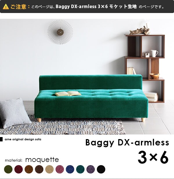 ベンチ 肘なし ソファー 椅子 二人用ソファー アームレス ソファ 北欧 sofa Baggy DX-armless 3×6 モケット ベロア □