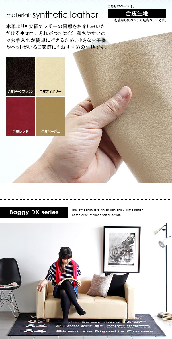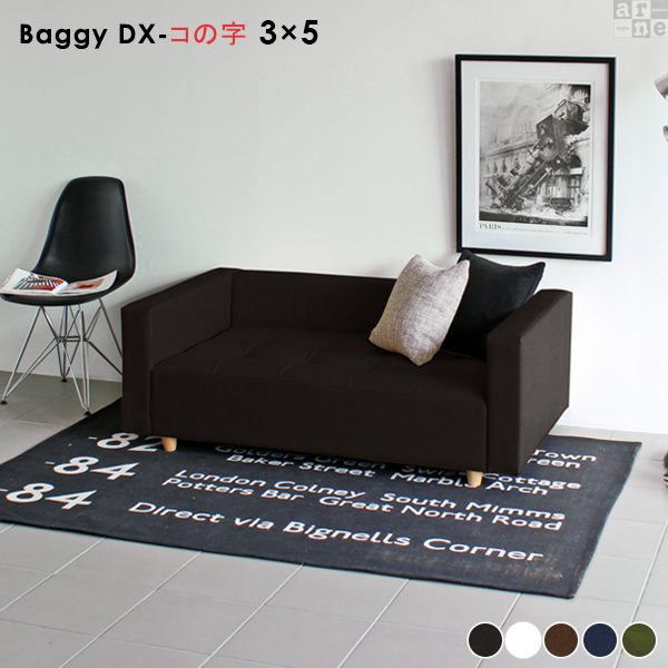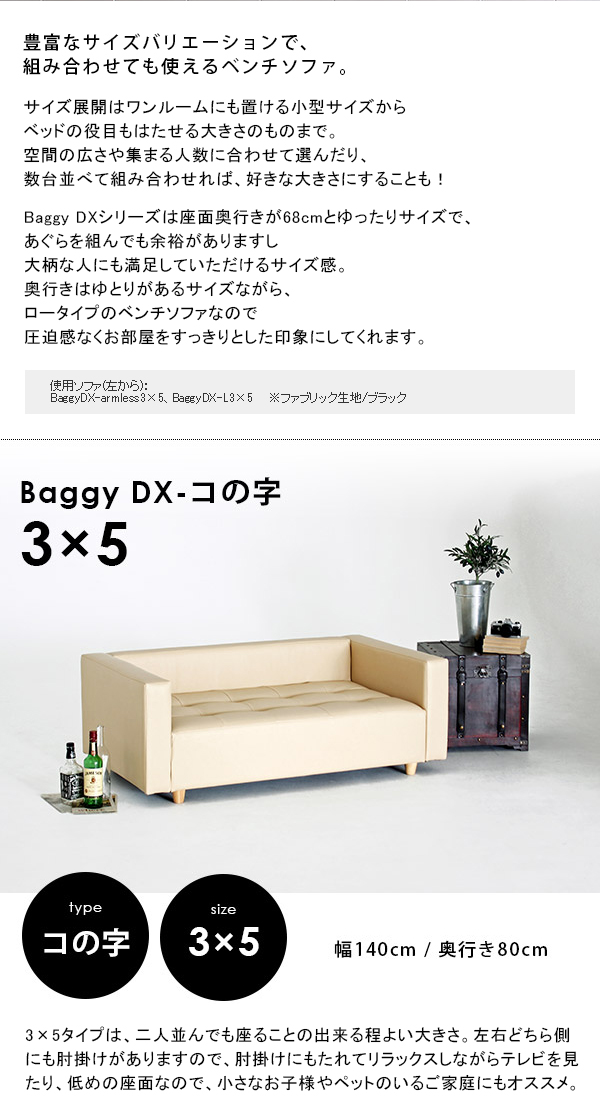 ローソファ コンパクト ベンチ ソファー ソファベンチ 北欧 日本製 合皮 Baggy DX-コの字 3×5 合成皮革 □