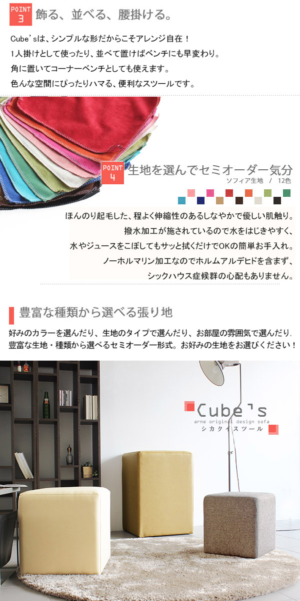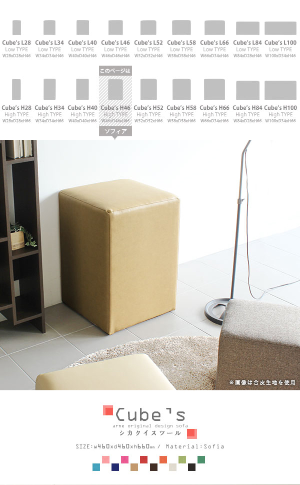 スツール キューブ 四角 スクエア 椅子 イス ベンチ ソファ ソファー 腰掛け 背もたれなし Cube’s H46 ソフィア □