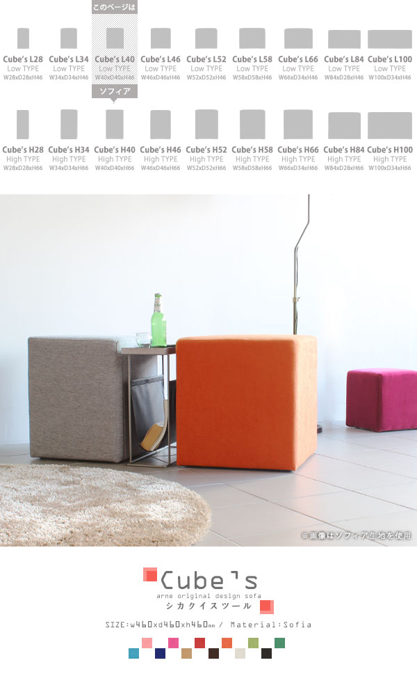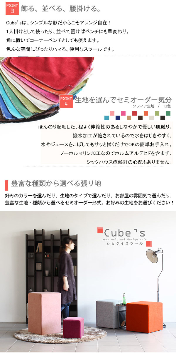 スツール キューブ 四角 スクエア 椅子 イス ベンチ ソファ ソファー 腰掛け 背もたれなし Cube’s L46 ソフィア □