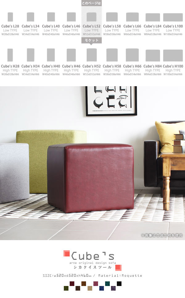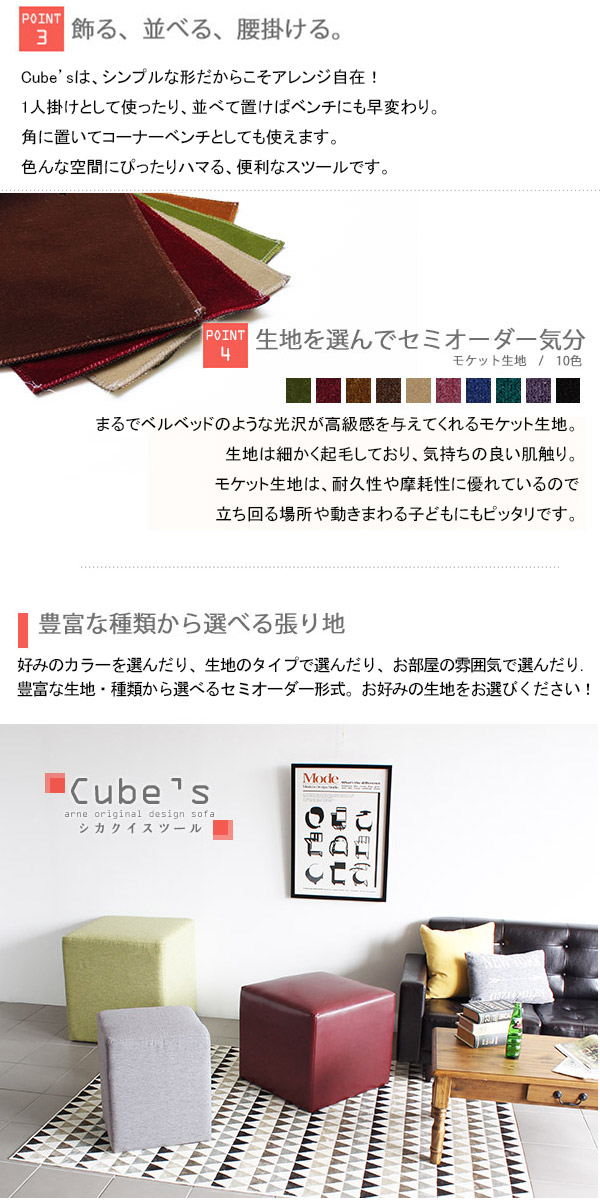 スツール 椅子 チェアー ロースツール 北欧 スクエア 椅子 イス ベンチ ソファ 背もたれなし Cube’s L52 モケット ベロア □