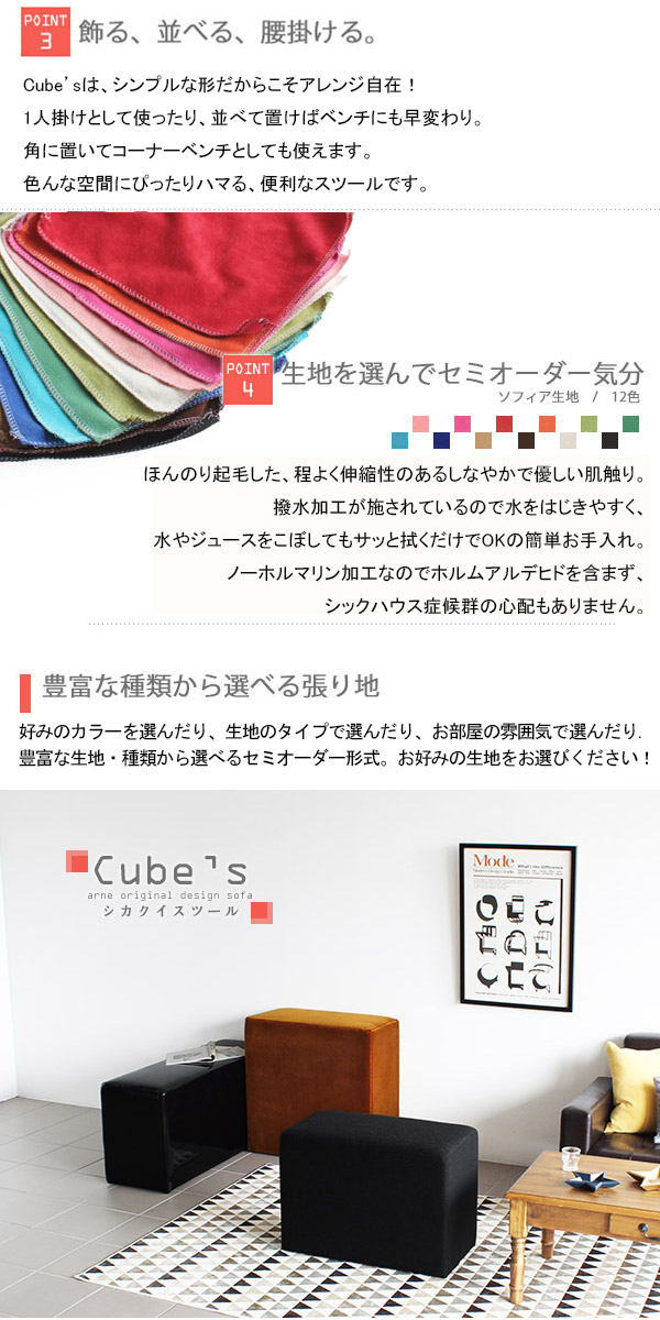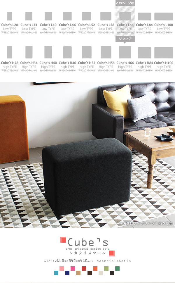 スツール キューブ 四角 スクエア 椅子 イス ベンチ ソファ ソファー 腰掛け 背もたれなし Cube’s L66 ソフィア □