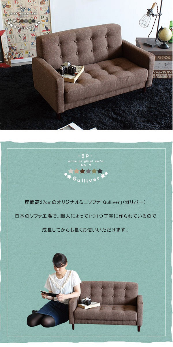 キッズソファ 子供用ソファー 二人掛け ソファー 北欧風 キッズソファー ソファ コンパクト Gulliver ガリバー NS-7 □