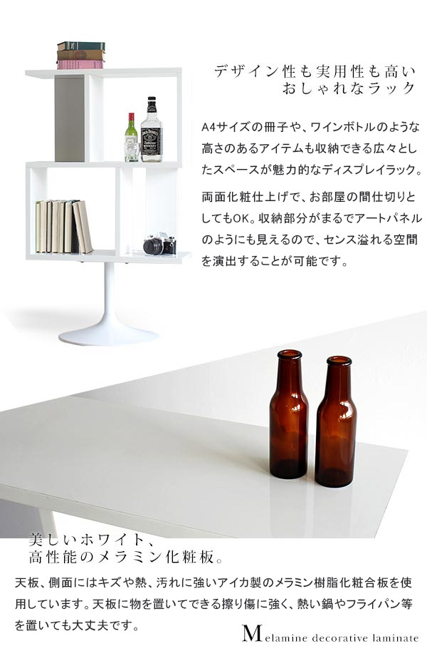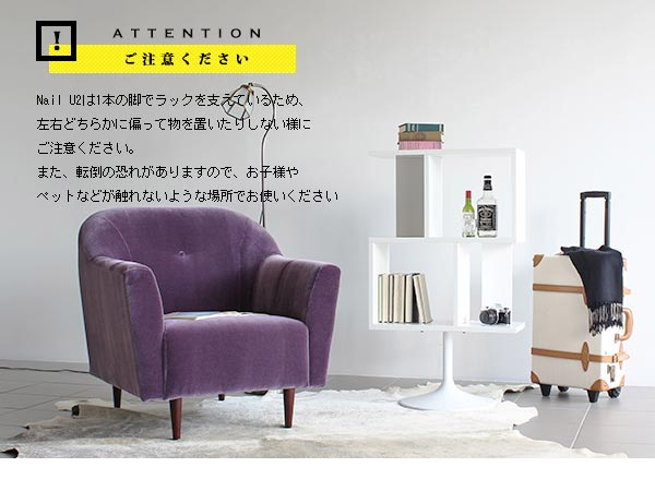 ※1本の脚でラックを支えているため、左右どちらかに偏って物を置いたりしない様にご注意ください。また、転倒の恐れがありますので、お子様やペットなどが触れないような場所でお使いください