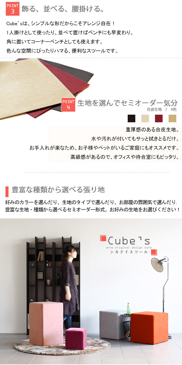 スツール キューブ 四角 スクエア 椅子 イス ベンチ ソファ ソファー 腰掛け 背もたれなし Cube’s L46 合成皮革 □